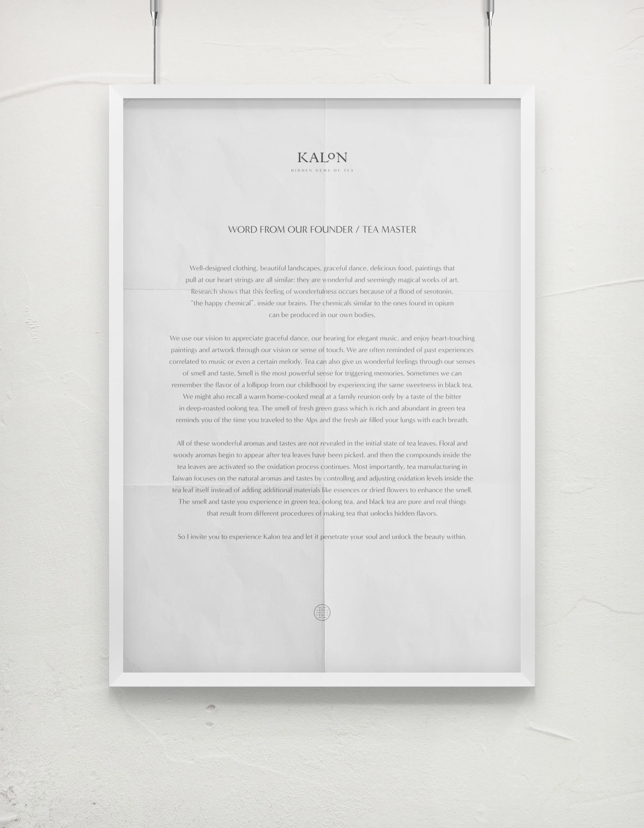 Our father founded Kalon Tea more than forty years ago in the mountains of Nantou, Taiwan, inspired by the indelible memory of an orchid aroma he recalled from his childhood. The tea you are holding represents the culmination of his lifelong pursuit of the perfect balance of flavours.