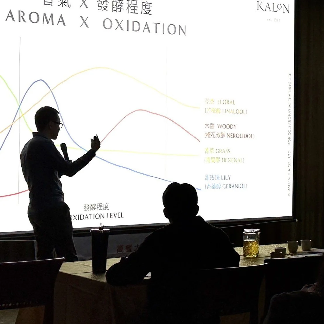 第一風味源與第二風味源、水分消失的茶香氣激發原理、開蘭茶的獨創製程原理、茶香氣化合物的日常類比、茶葉烘焙和氧化時的香氣化合物變化、茶的香氣激發原理與感知、開蘭茶品香氣化合物和曲線圖表。