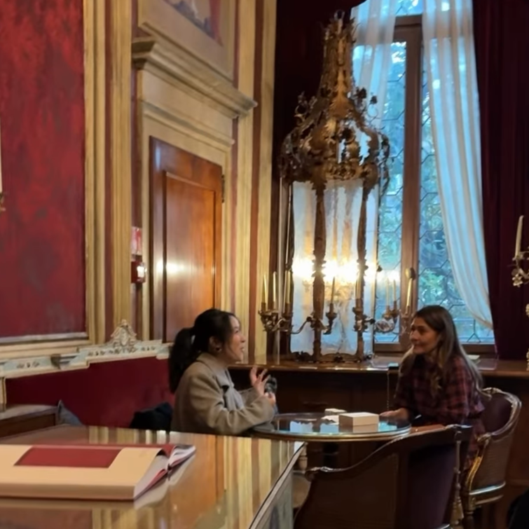 聖誕節前夕我們在Palazzo Venart 的 Piano Nobile 與總經理Luana Mazzega品茶,空間像一個精緻的珠寶盒。003 Cloud Ember:連飯店總經理解讀後都抽出一張粉紅色的色卡,和我們的想像一致。這只是第一次見面—茶是想像的媒介,能喚起色彩、旋律、質感和故事。 008 Sunset Gold:能把古董家具的沉重與客人的孤獨感連結,讓茶成為一件「流動的家具」。她驚喜地說:「我從沒體驗過這樣的感受,我很喜歡!我希望我的客人也能體驗。」